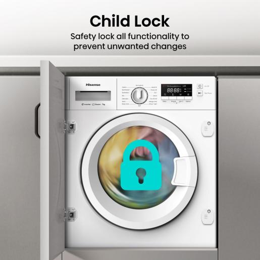 HISENSE 3 Series Integrated 7 Kg – WF3M741BWI 1400 rpm – White washing machine will ease your weekly laundry task. It’s 7KG capacity is great for medium-sized households. Additional functions: Prewash, Skip spin, Temperature setting, Extra rinsing, Personal settings saving.. Thanks to the Delay Timer, you can set the machine to start whenever you need it, so you can run errands and get ready without worry. Above all, the Baby Care Programme takes care of the little ones’ clothing, making sure they stay at their best for longer.